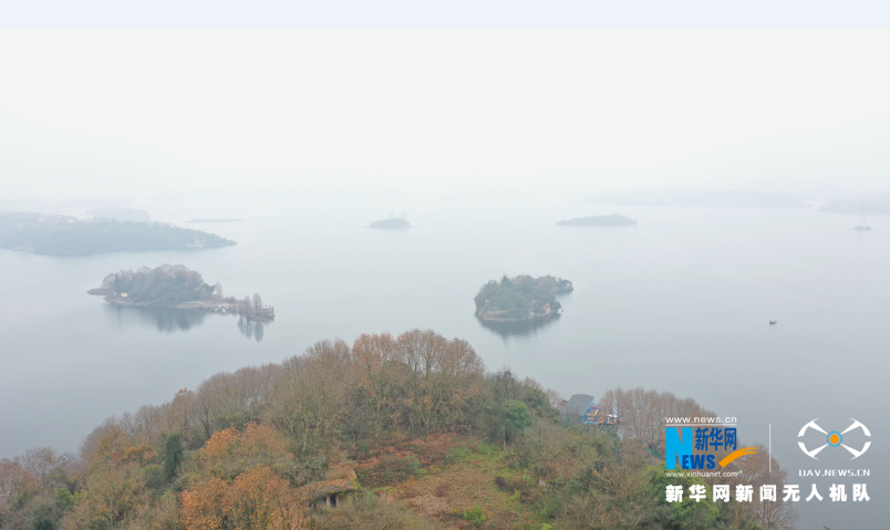 图为1月4日航拍的贵阳清镇市红枫湖一景。新华网 周远钢 摄