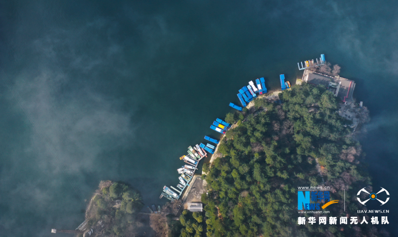 航拍贵阳百花湖游船码头。新华网 卢志佳 摄