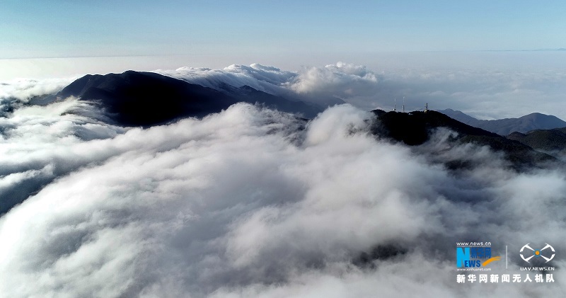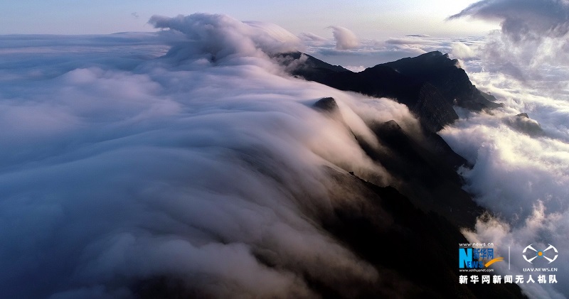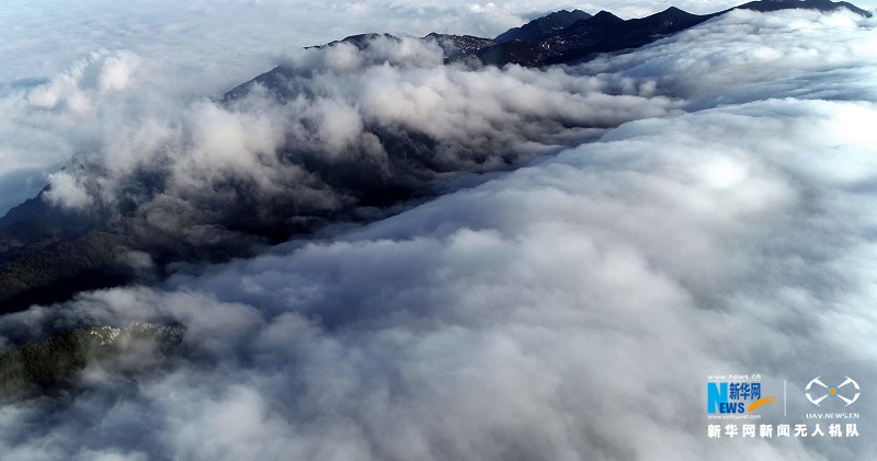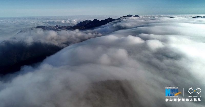 此次瀑布云持续了5个多小时,云雾翻过群山,飞流直下,场面十分壮观。新华网发 李敏 摄