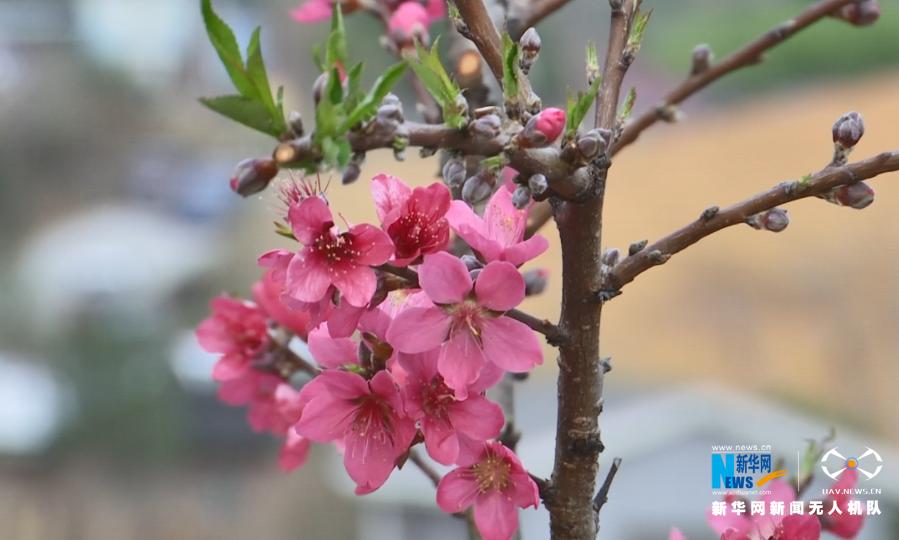 枝头上一朵朵盛开的桃花为春天增添了许多生机。新华网发