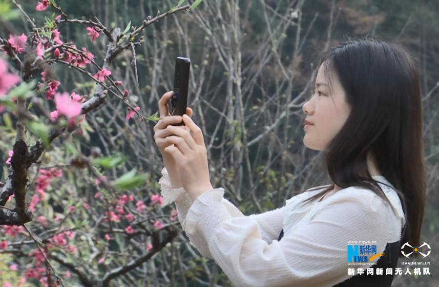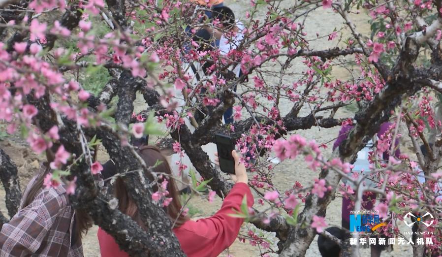 千树万树桃花开,繁花再现,吸引了无数游客前来打卡拍照。新华网发