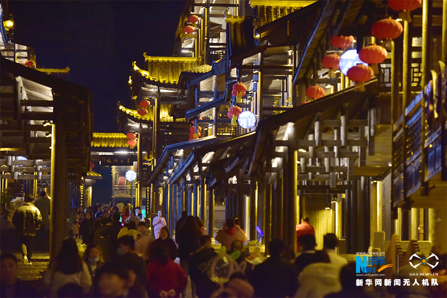这是无人机拍摄的酉州古城,大红灯笼挂满天。新华网发(陈碧生 摄)