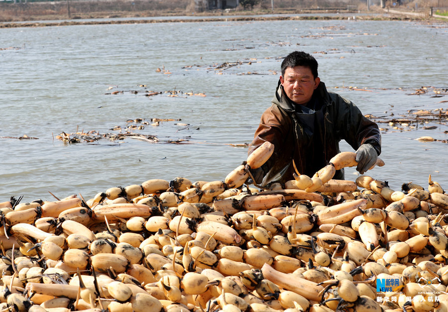 【“飞阅”中国】水上“春耕”采藕忙-新华网
