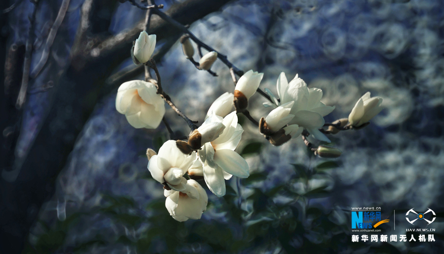 白玉兰不叶而花,它不等新叶吐绿,便抢先绽放。新华网发(黄巧珠摄)