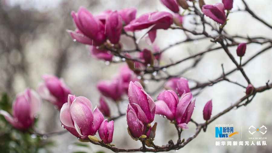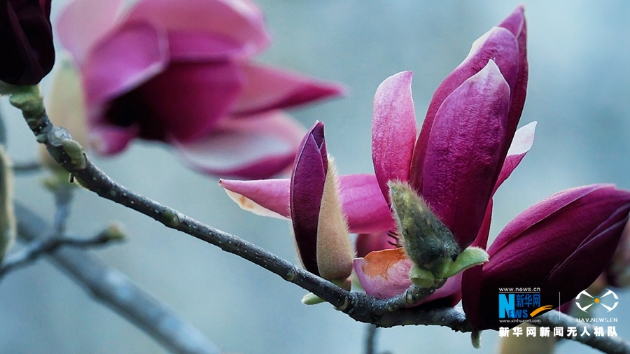 紫色的玉兰花也叫“玉堂春”,属木兰科落叶乔木观赏花。新华网发(邝建华摄)