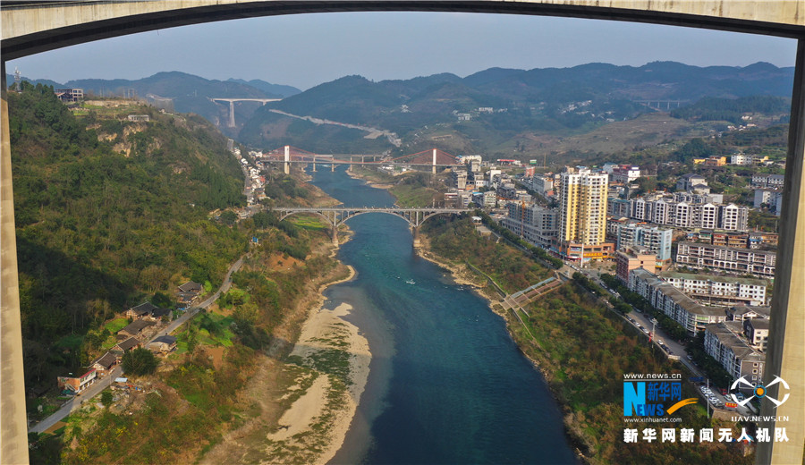 航拍贵州五桥横跨乌江 形似“五龙过江”-新华网