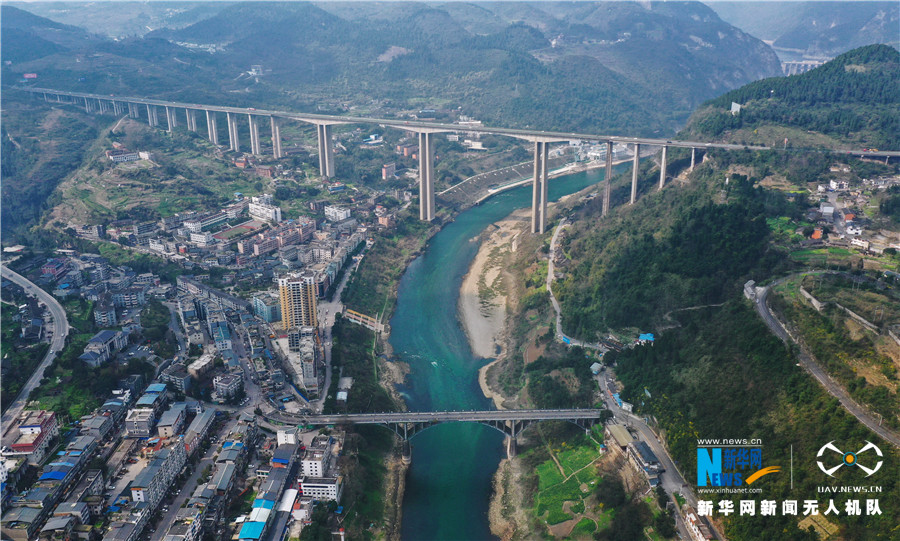 航拍贵州五桥横跨乌江 形似“五龙过江”-新华网