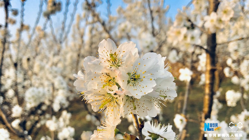 早春二月天渐暖,樱桃花发向阳枝。近日,在湖北南漳城关镇的马家嘴村、榆树岭村、大山村等地,上万亩樱桃花在春日暖阳中竞相绽放,漫山遍野的樱桃花把乡村装扮得格外美丽,吸引了众多游客们前来赏花、拍照。(赵梦琪)