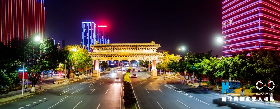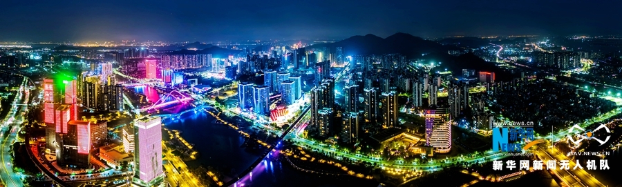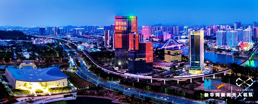 航拍南沙区夜景灯光璀璨。新华网发(曾铠钢摄)