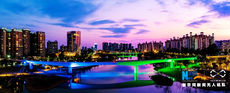横跨河道的桥梁,既是南沙的中轴线,又是夜色中的焦点。新华网发(曾铠钢摄)