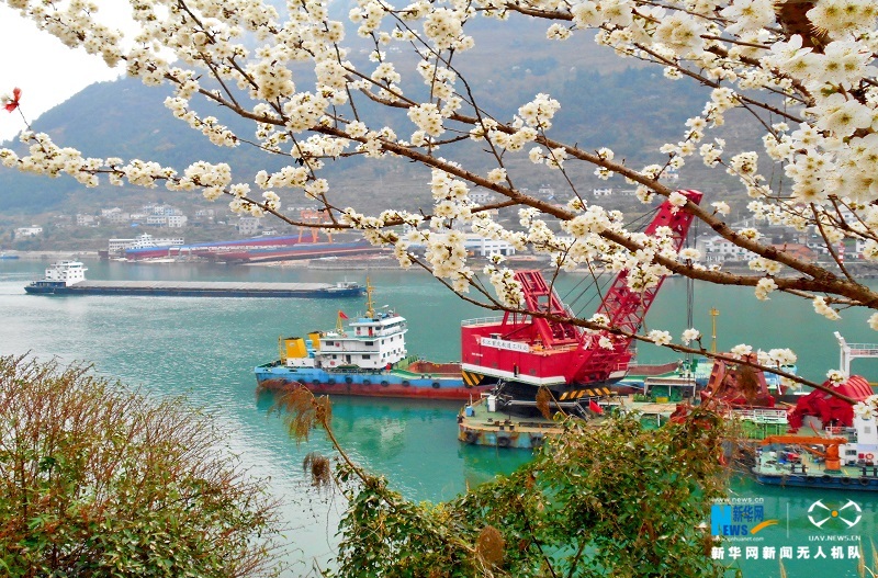 近来气温回暖,三峡坝区湖北省宜昌市夷陵区的樱花、桃花、梨花等竞相绽放,长江两岸随处都是动人画卷。