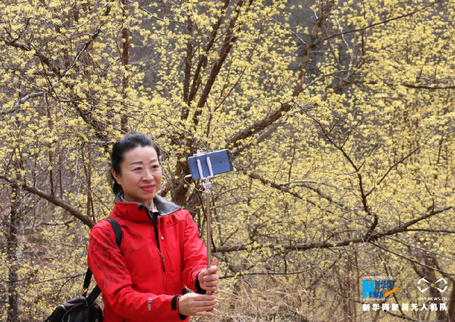 3月9日,在全国乡村旅游重点村佛坪县长角坝镇沙窝村的“茱萸谷”,游客观赏山茱萸花。新华网发 吴彦峰 摄