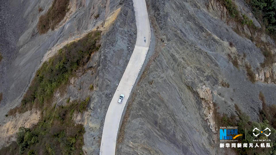 在重庆市石柱县七曜山上,从六塘乡到大风门,有一段沿着山脊背修出的公路,两侧都是悬崖,公路就修建在山脊顶端,仿若“天路”。在此公路上开车,从空中俯瞰就像行驶在刀片上,步步惊心,既壮观又惊险。新华网发(谢天 摄)