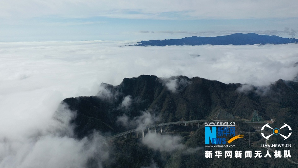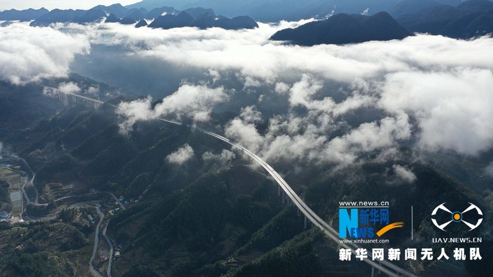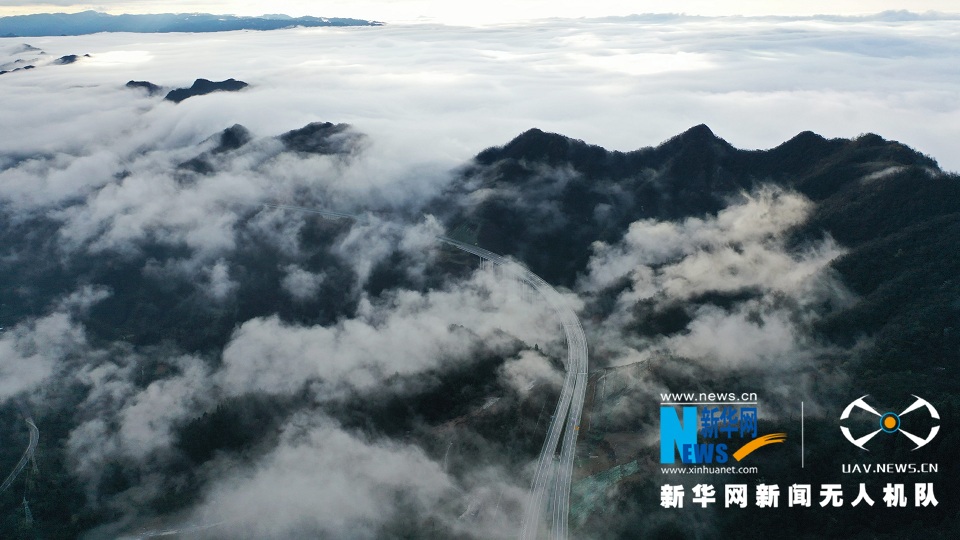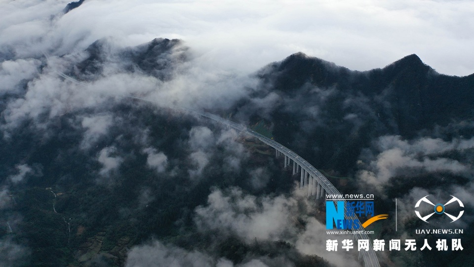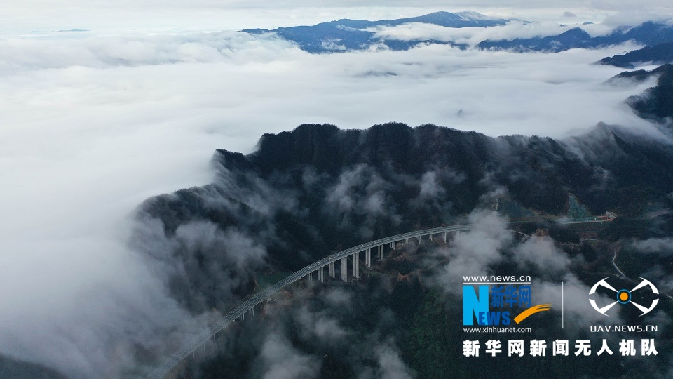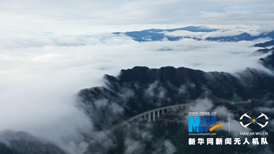 雨后天晴,位于湖北省恩施土家族苗族自治州鹤峰县境内的宣鹤高速公路在云海中若隐若现,美如画卷。(吴文华、杨顺丕)