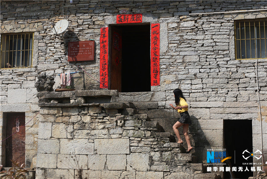 3月18日,一位高荡村村民走在石阶上。新华网 卢志佳 摄