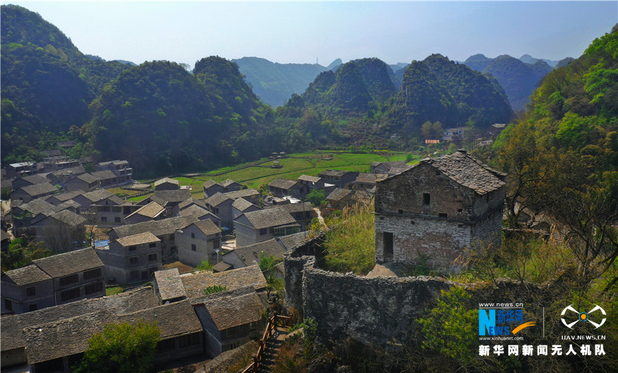 3月18日航拍的贵州镇宁高荡村民居及古堡。新华网 卢志佳 摄