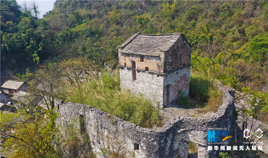 3月18日航拍的贵州镇宁高荡村古堡。新华网 卢志佳 摄