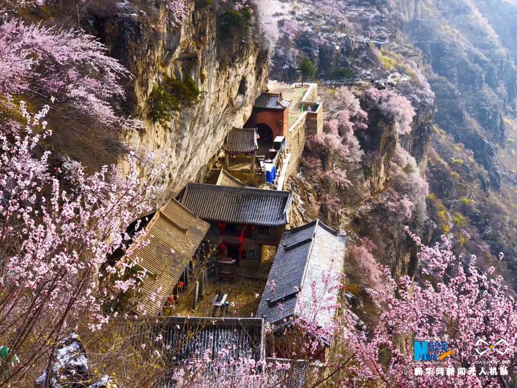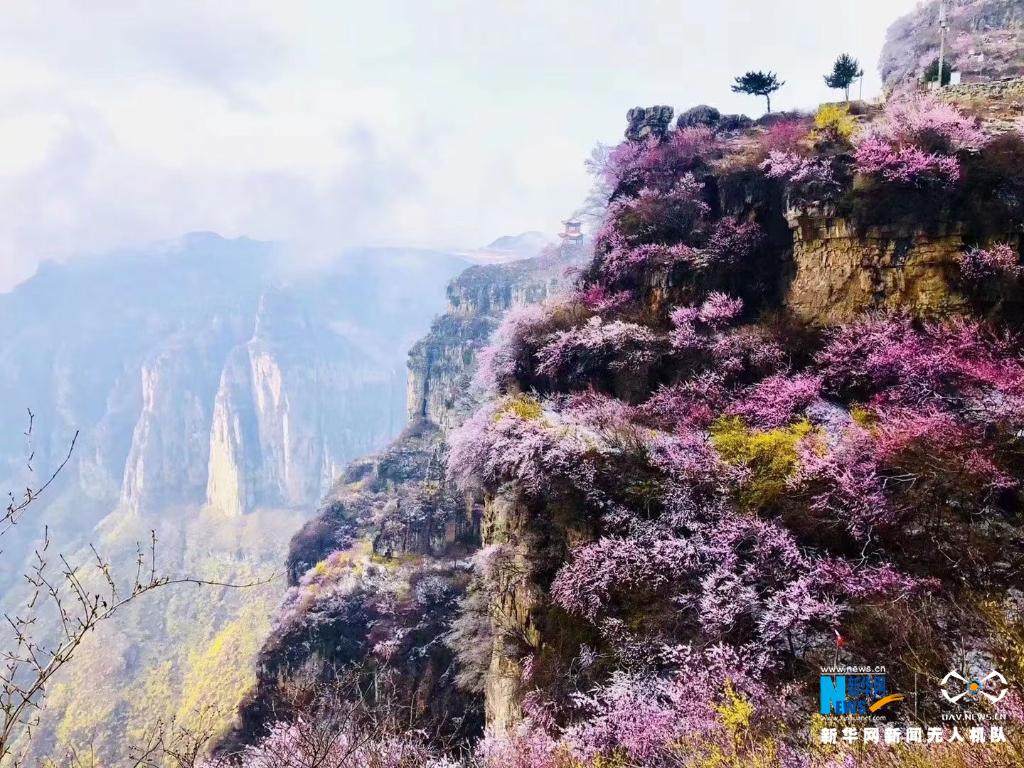 近日,通天峡景区内桃花盛开。坐落在山西长治平顺县的通天峡景区奇峰林立、峡谷万丈,汇聚了太行山巍峨厚重、雄奇险峻的特色,同时谷内泉涌溪流,平湖映月,小桥流水……集奇、峻、秀、幽于一体。