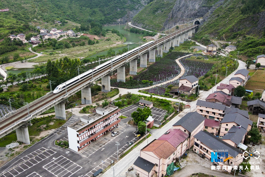 一列动车驶出隧道从头顶奔驰而过,高架桥下苗圃里的三角梅、绣球等花卉争奇斗艳,不远处龙河岸边的湿地公园风景如画,精心打造的古村落里小桥流水……谁曾想到,这样一幅乡村美景所呈现的地方,三年多前依然被深度贫困所困扰。重庆市丰都三建乡,曾经是一个生存环境差、基础设施弱、产业发展难的深度贫困乡。三年多来,三建乡加快推进水利建设,实施饮水工程、山坪塘整治及水库建设,解决了生产生活用水问题。同时,通过开展资源变资产、资金变股金、农民变股东的“三变”改革,全面盘活了撂荒闲置的土地资源,破解了集体经济“空壳村”难题,发展起特色农经产业1.87万亩,带动农户户均年增收9200元以上。如今的三建乡,生态环境不断变好、人居环境持续改善、农民增收效益初显,乡村振兴的田园牧歌正在这里奏响。新华网 耿骏宇 摄