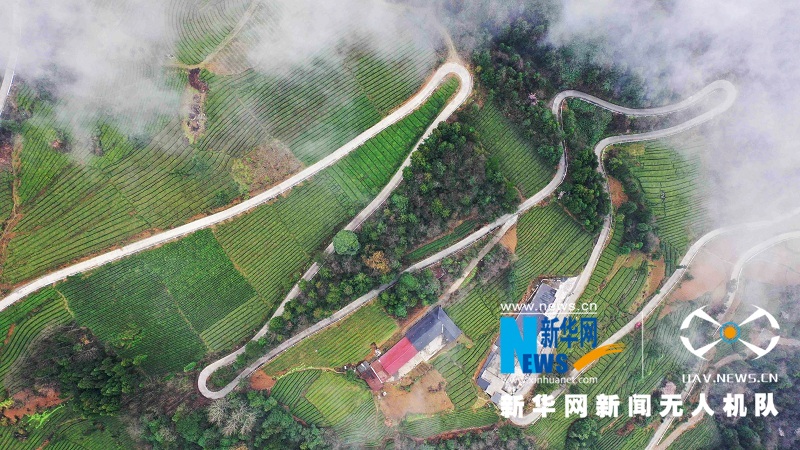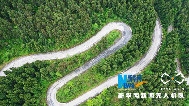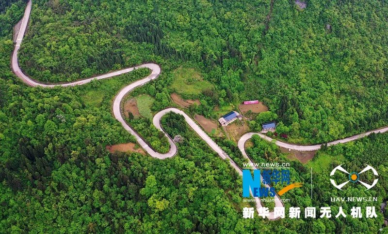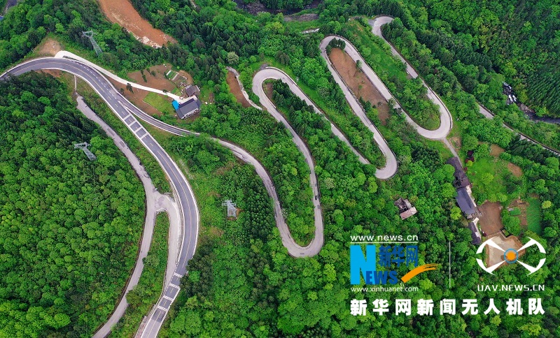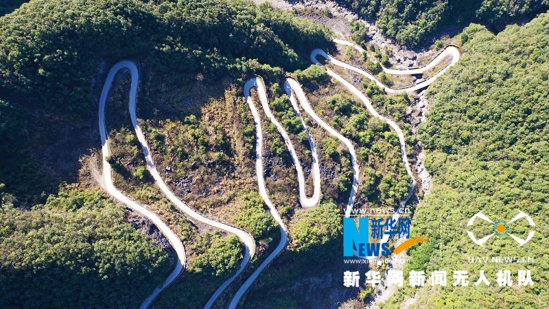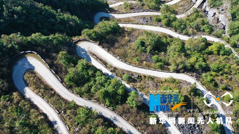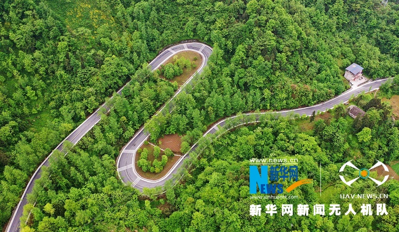图为航拍湖北省鹤峰县的乡村公路,蜿蜒曲折,蔚为壮观。