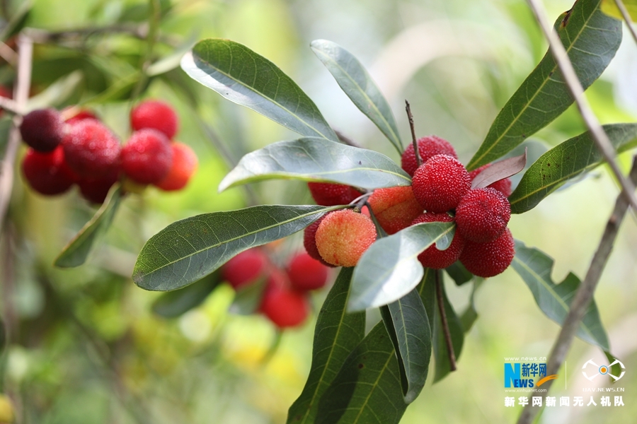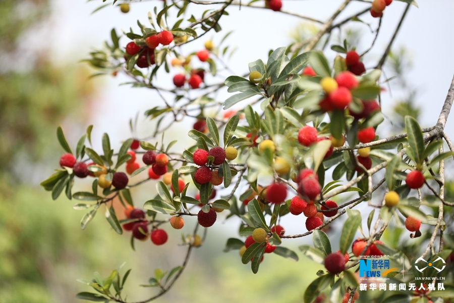 “红实缀青枝,烂漫照前坞”,又到一年杨梅采收时节。新华网发(邝健华摄)