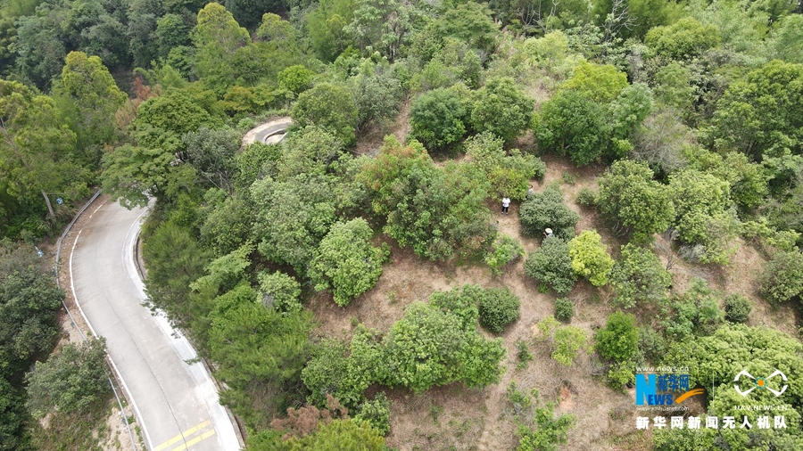 据悉,联群村有二十多年的杨梅种植历史,种植面积1000多亩。航拍杨梅林。新华网发(刘骏杰摄)