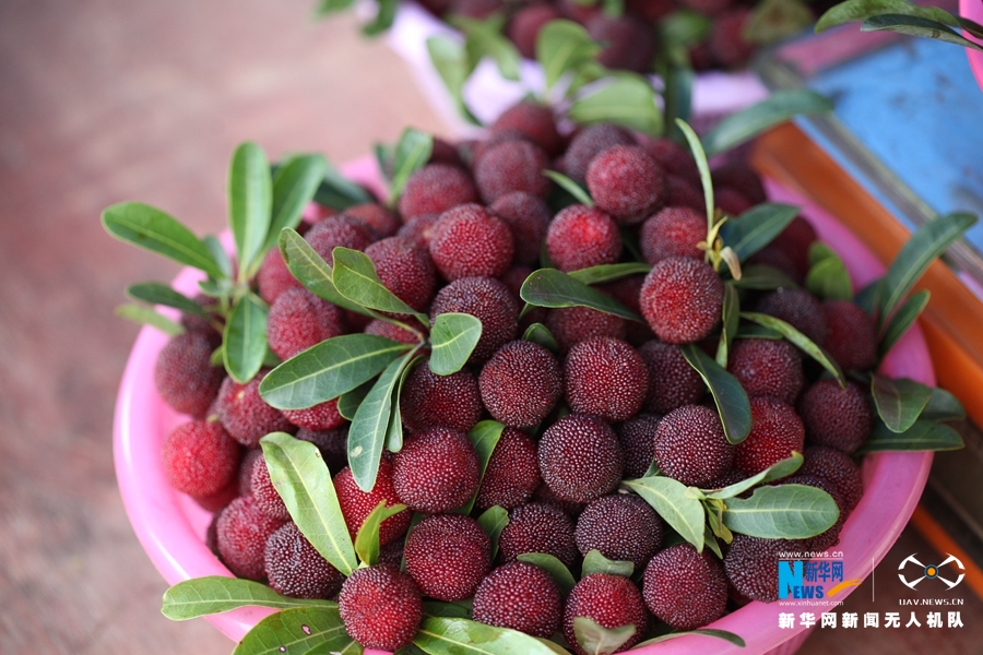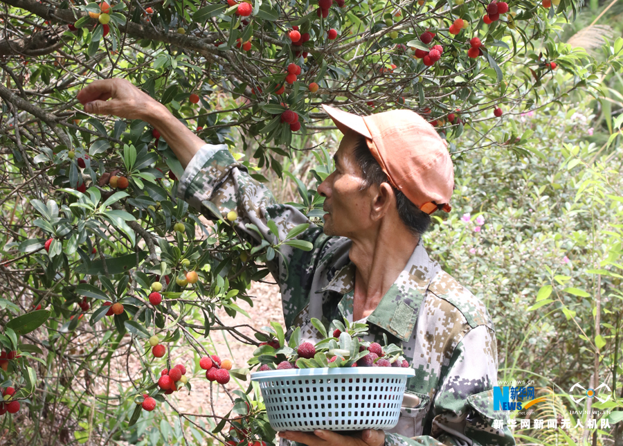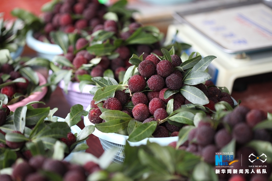 今年由于杨梅迎来丰收,联群村预计产量在50万斤左右。新华网发(邝健华摄)