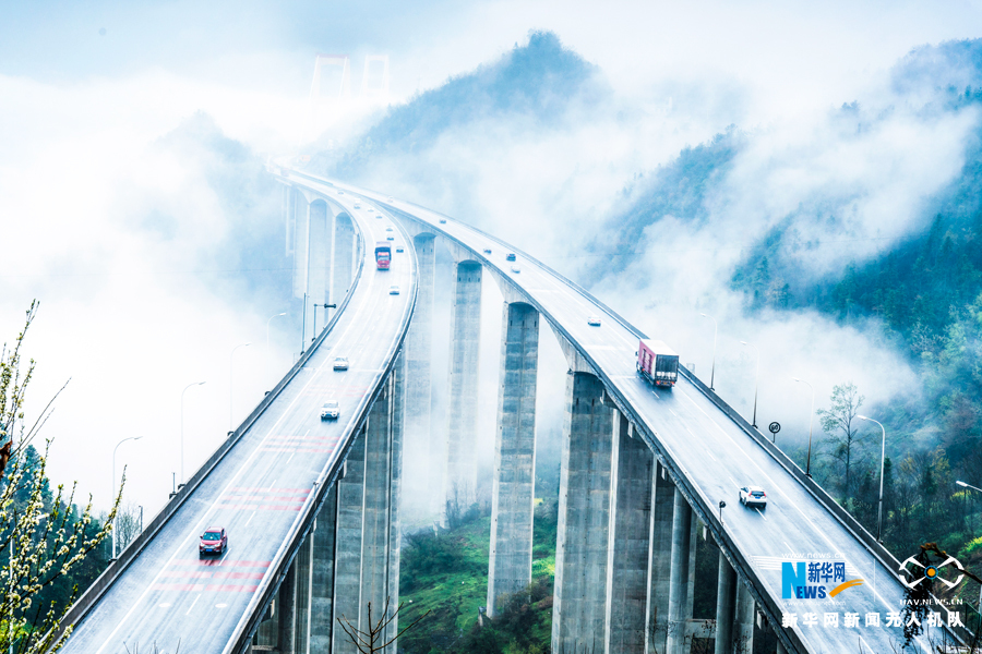 位于湖北省恩施土家族苗族自治州巴东县野三关镇的四渡河大桥,坐落于鄂西武陵崇山峻岭中,横跨高山峡谷。新华网发 文林 摄