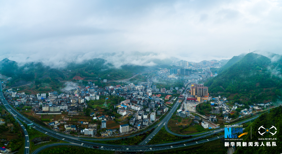 航拍湖北省恩施土家族苗族自治州巴东县野三关镇,道路纵横交错。新华网发 孟祥来 摄