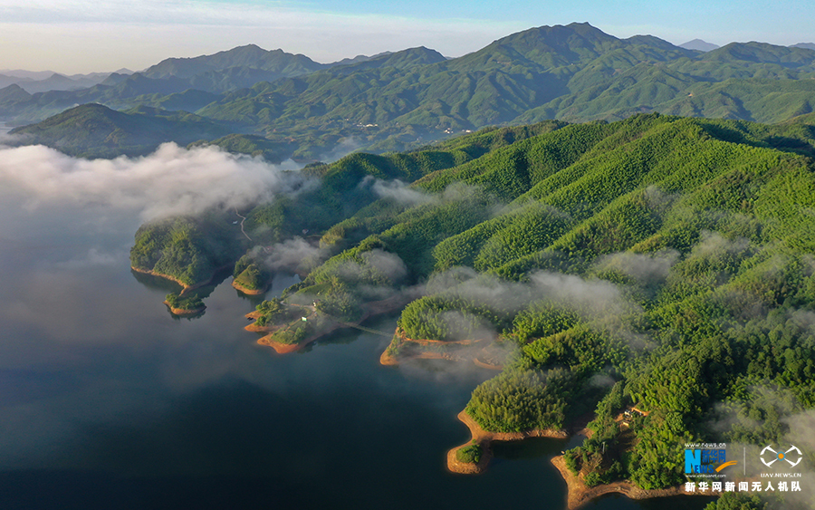 仲夏时节,地处大别山腹地的安徽省六安市霍山县佛子岭库区风景如画,朵朵白云在绿水青山之间飘荡,令人心旷神怡。新华网发(徐程 摄)