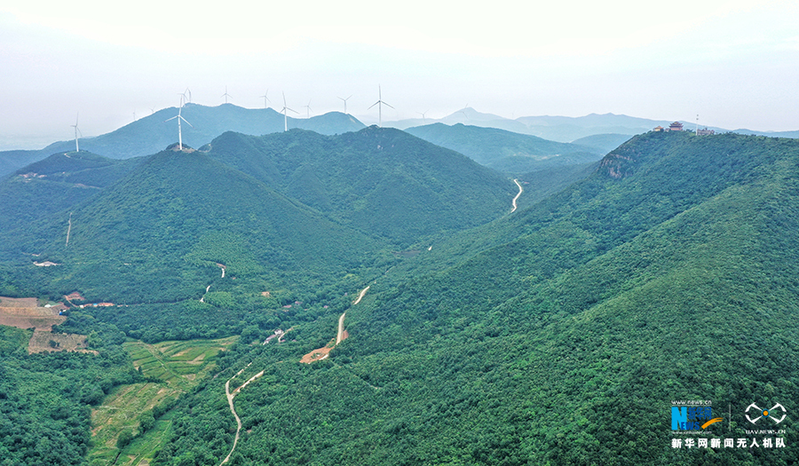 航拍群山环绕的安徽省巢湖市散兵镇大岭村。新华网发(李斌 摄)