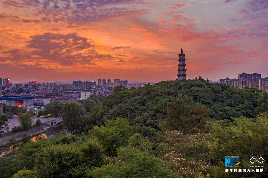 【“飞阅”中国】红霞映照山城美-新华网