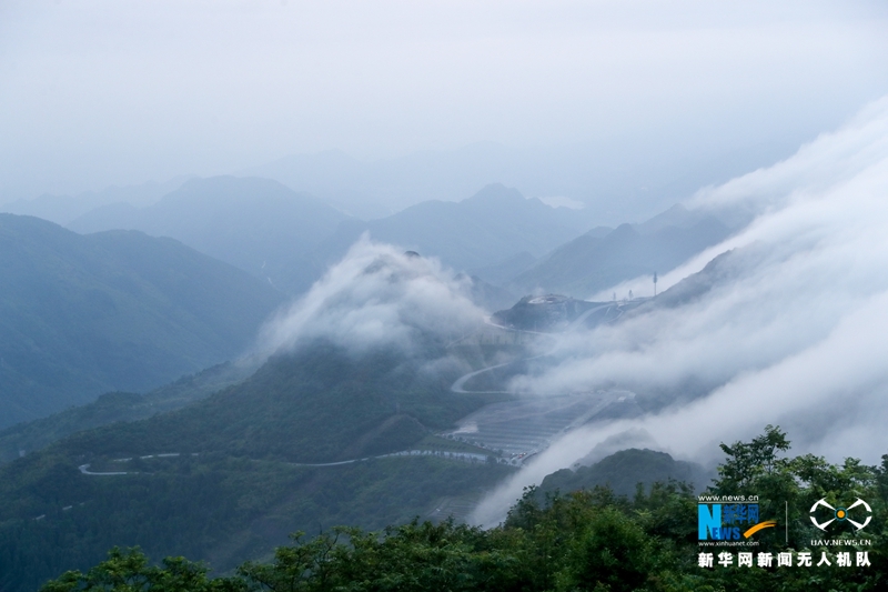 2021年7月4日,云雾缭绕的四川省广安市华蓥山盘山公路。