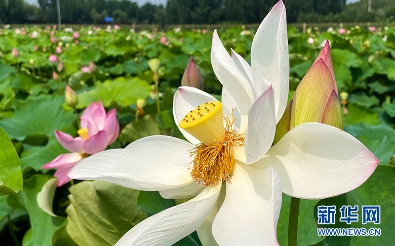 荷花盛放,芳香四溢。新华网发(张敬丽 摄)