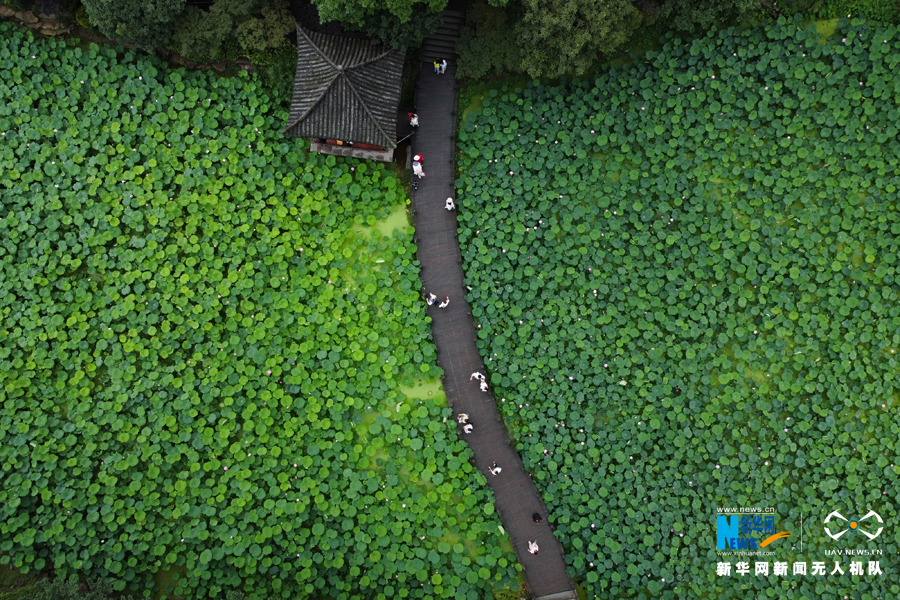 在蝉鸣不休的夏日里,行走在荷田间,倍感清凉。新华网 耿骏宇 摄