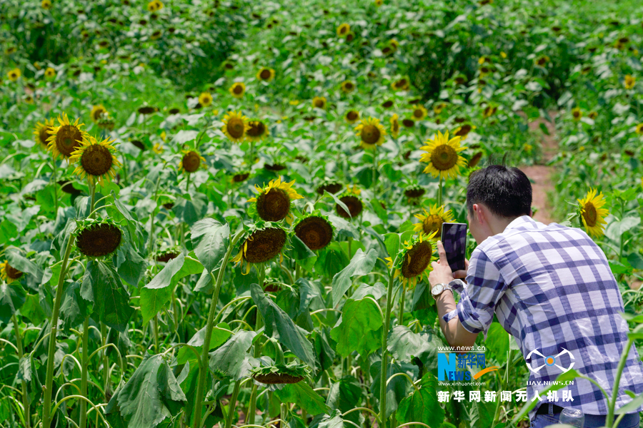 在重庆市北碚区静观镇素心村,大片的向日葵花开成了张张“笑脸”,让人心旷神怡。新华网 耿骏宇 摄