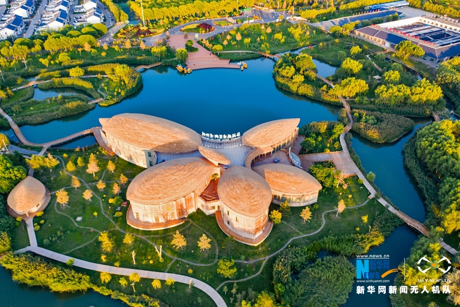 【“飞阅”中国】甘肃张掖:湿地夕照溢金辉-新华网