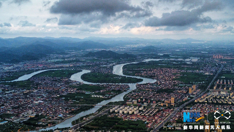8月17日傍晚,浙江省余姚市城区西南方上空,一缕夕阳在高空云团的簇拥下,漏出缕缕霞光。从高空远望,此刻,天地山河浑若“天空之城”,壮美无比。新华网发 吴大庆 摄