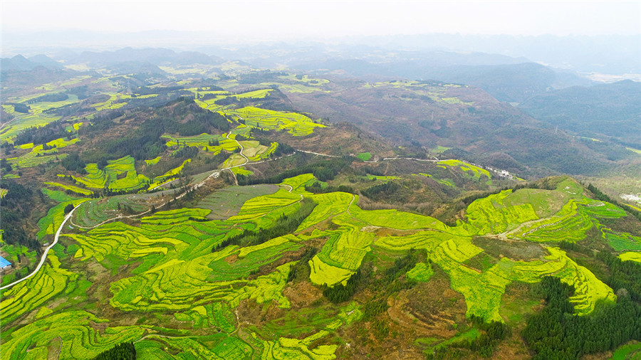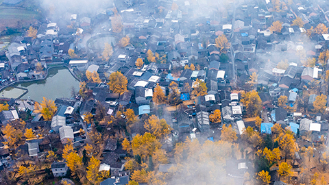 在云南省腾冲市固东镇,冬日里的“银杏村”,云雾缭绕,金色银杏树与村落交相辉映,一条条道路变成“金色大道”,吸引了不少游客前来拍照留念。