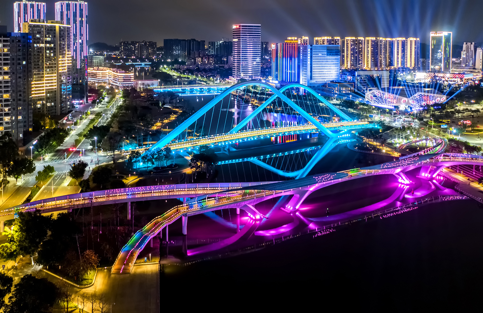 沿着滨河路从南到北,汾河将山西省太原市城市两岸的美景串联起来。白天,城市五彩缤纷;夜晚,城市在灯光的点缀下,繁华璀璨。
