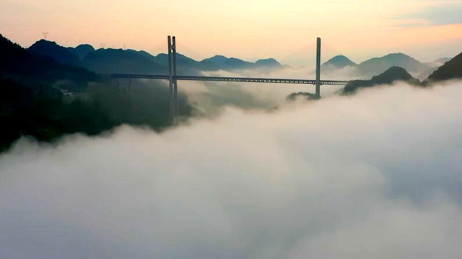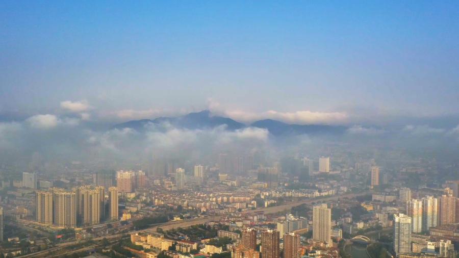 近日,怀化市鹤城区出现了平流雾自然现象,城市被氤氲的雾气环绕,仿佛披上了一层薄纱,犹如一座“天空之城”。