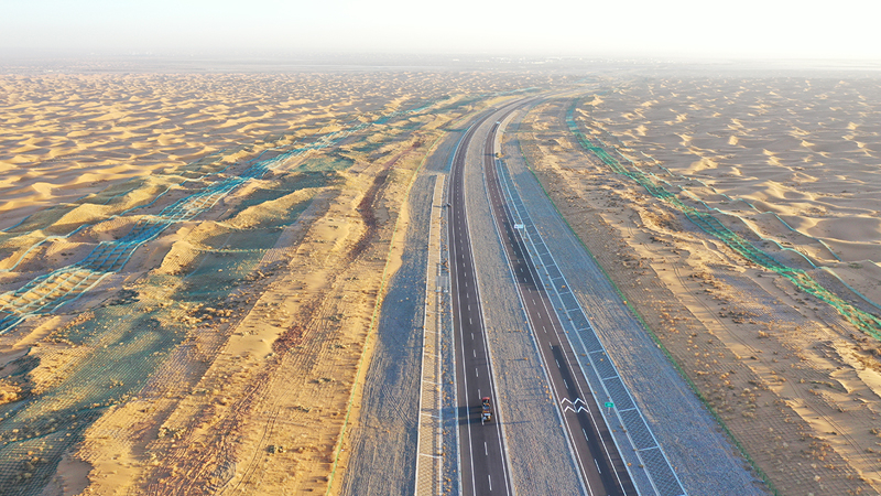 位于宁夏境内的乌(海)玛(沁)高速青铜峡至中卫段全长122.99公里,有18公里横贯腾格里沙漠腹地,是宁夏建设的首条沙漠高速公路。