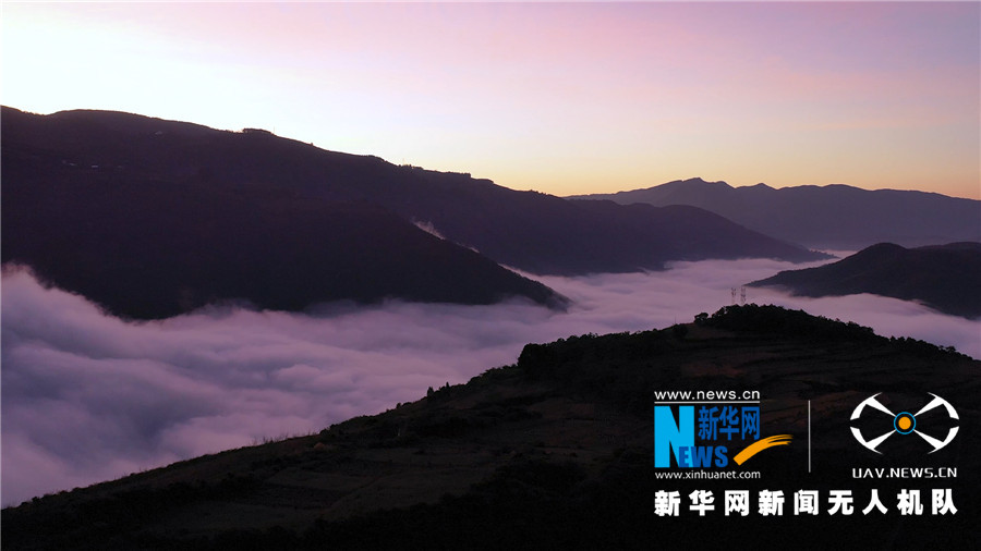 旭日东升下的云南南盘江,大量暖湿气流自峰壑中蒸腾弥漫,流淌开来,形成壮美的云海奇观,变幻无穷,气势磅礴(2021年12月18日摄影报道)。