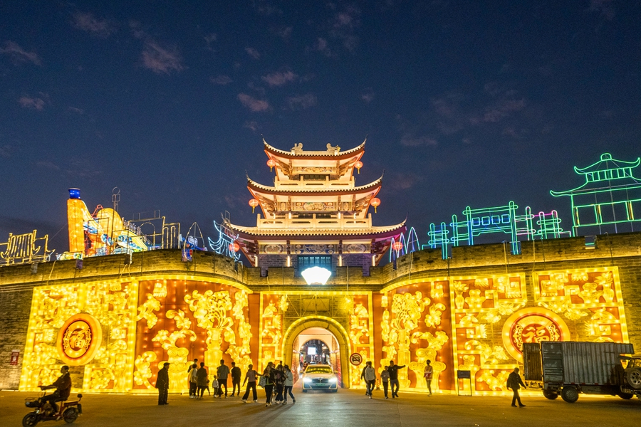 近日,广东省潮州市花灯璀璨,年味足。赏花灯是潮州人喜爱的元宵传统习俗之一。夜晚,从潮州古城墙开始,1400米展示区,多组彩灯一起点亮,潮州成为灯光的海洋。