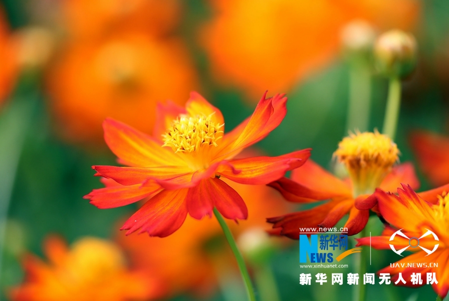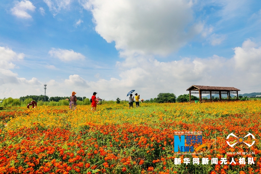 一望无际的花田宛如一条条彩带,在田地中描绘出灿烂图画。微风徐来,徜徉在花海里,步入花间小路,与美丽的花儿亲密接触。最美的初秋时光,仿佛在这一刻停留。(蒙博)