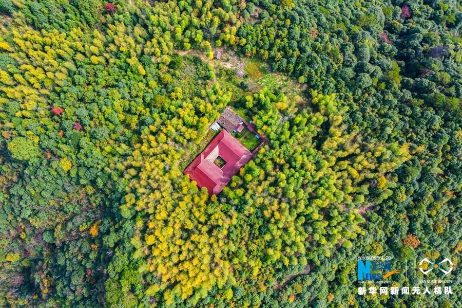 山顶古寺,掩映在竹海山林之中。新华网发(徐伟平 摄)