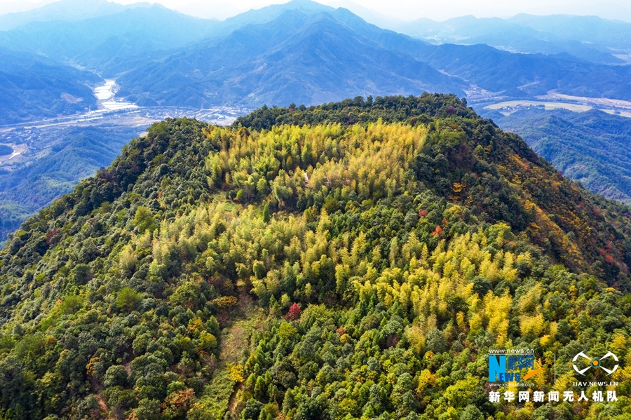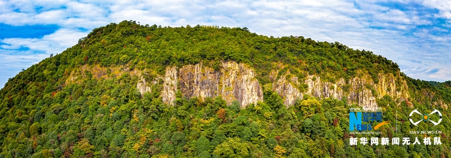 岩顶山竹海山林交相辉映,构成了一幅美丽画卷。新华网发(徐伟平 摄)