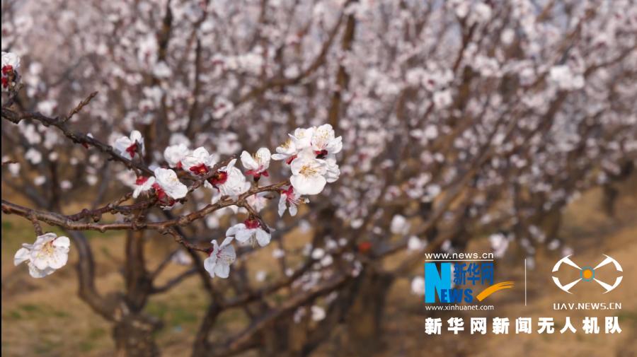 “汾河流水哗啦啦,阳春三月看杏花。”近日,山西省运城市稷山县翟店镇东大有村梯田上300余亩杏花正竞相怒放,放眼望去一片花海。(史港泽)