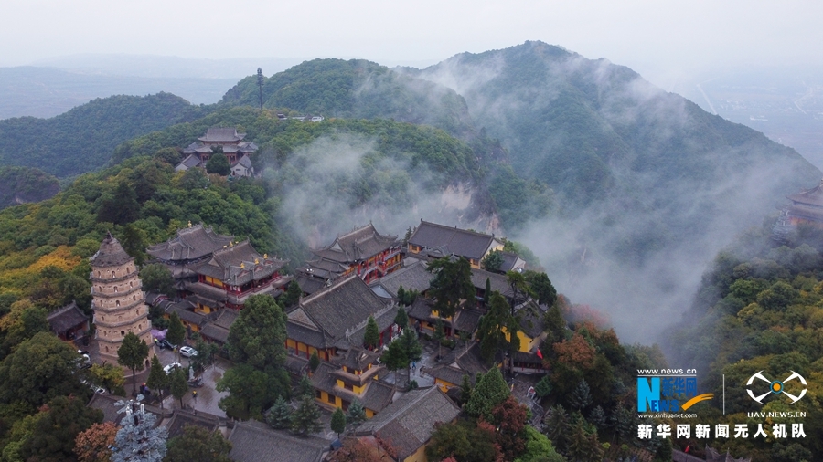 这是近日航拍的崆峒山风光。新华网发 (吴希会 摄)