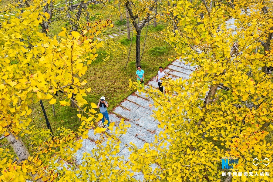 江西省大余县梅关古驿道景区内的银杏迎来了最佳观赏期,游客纷纷前来拍照打卡。新华网发 吴寿生 摄